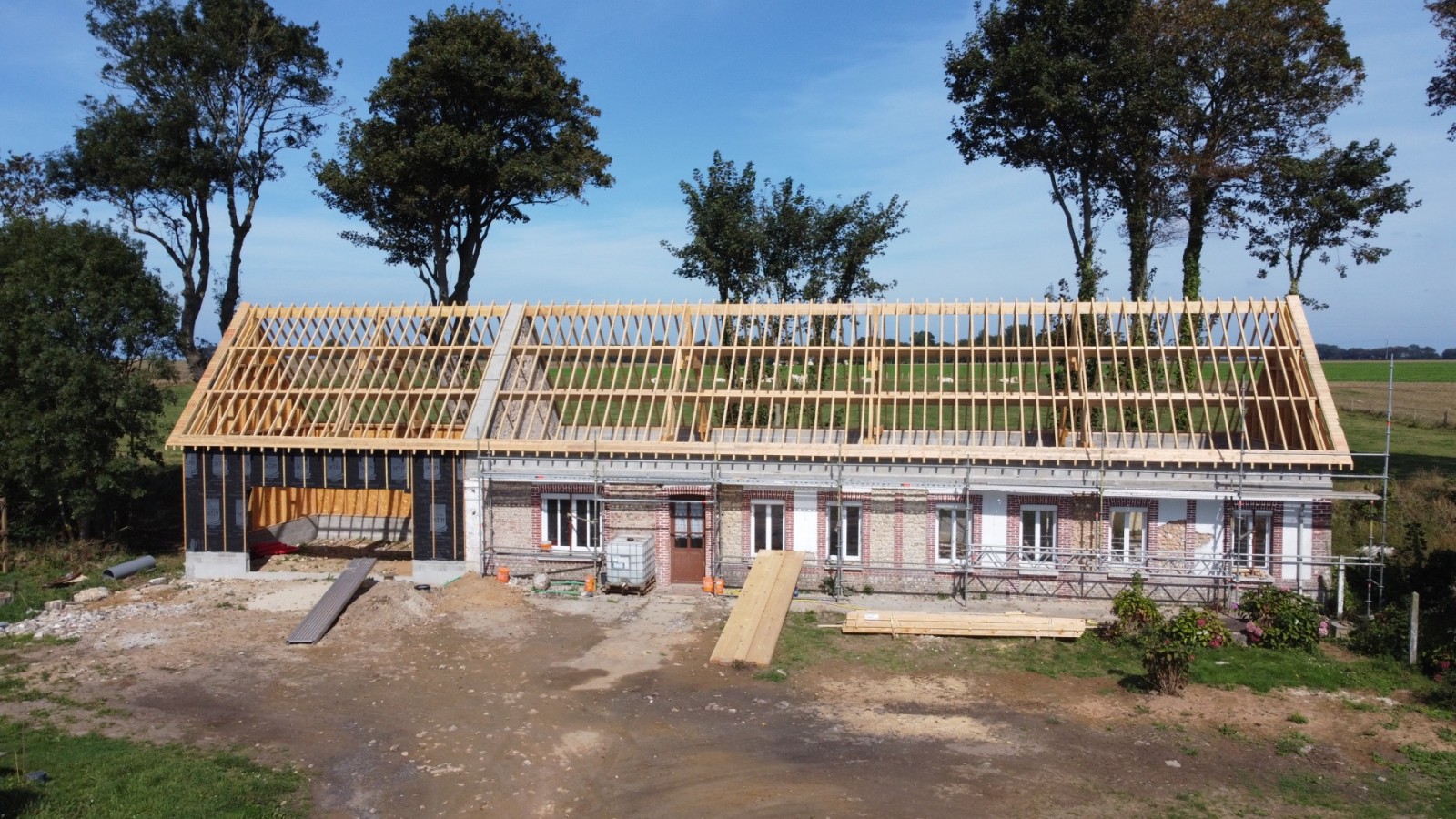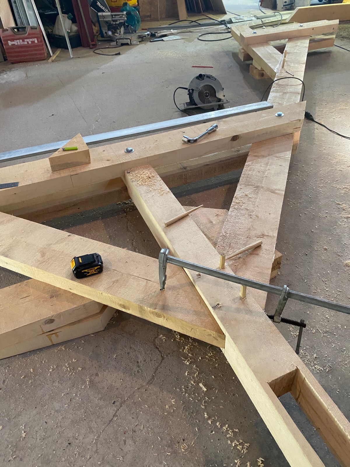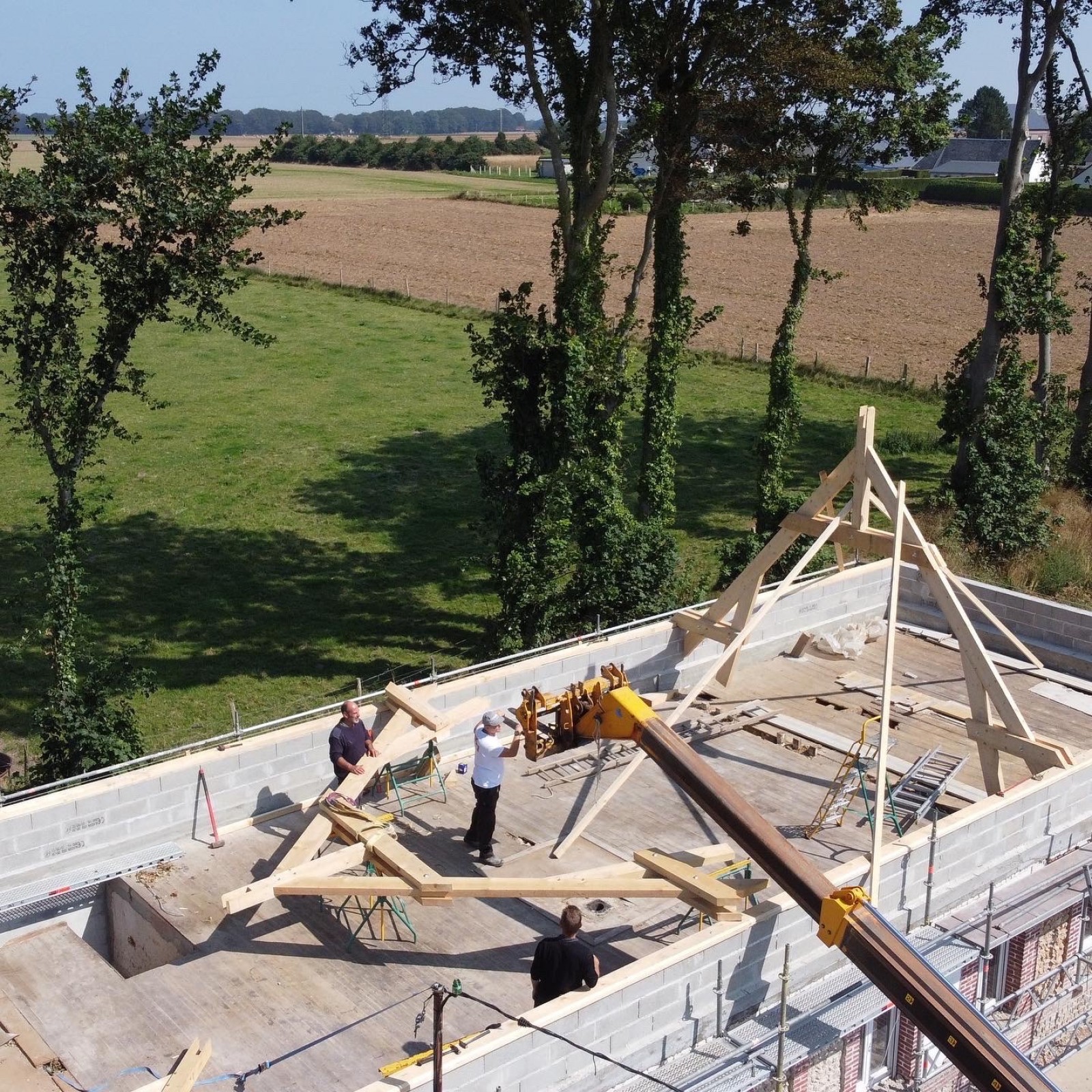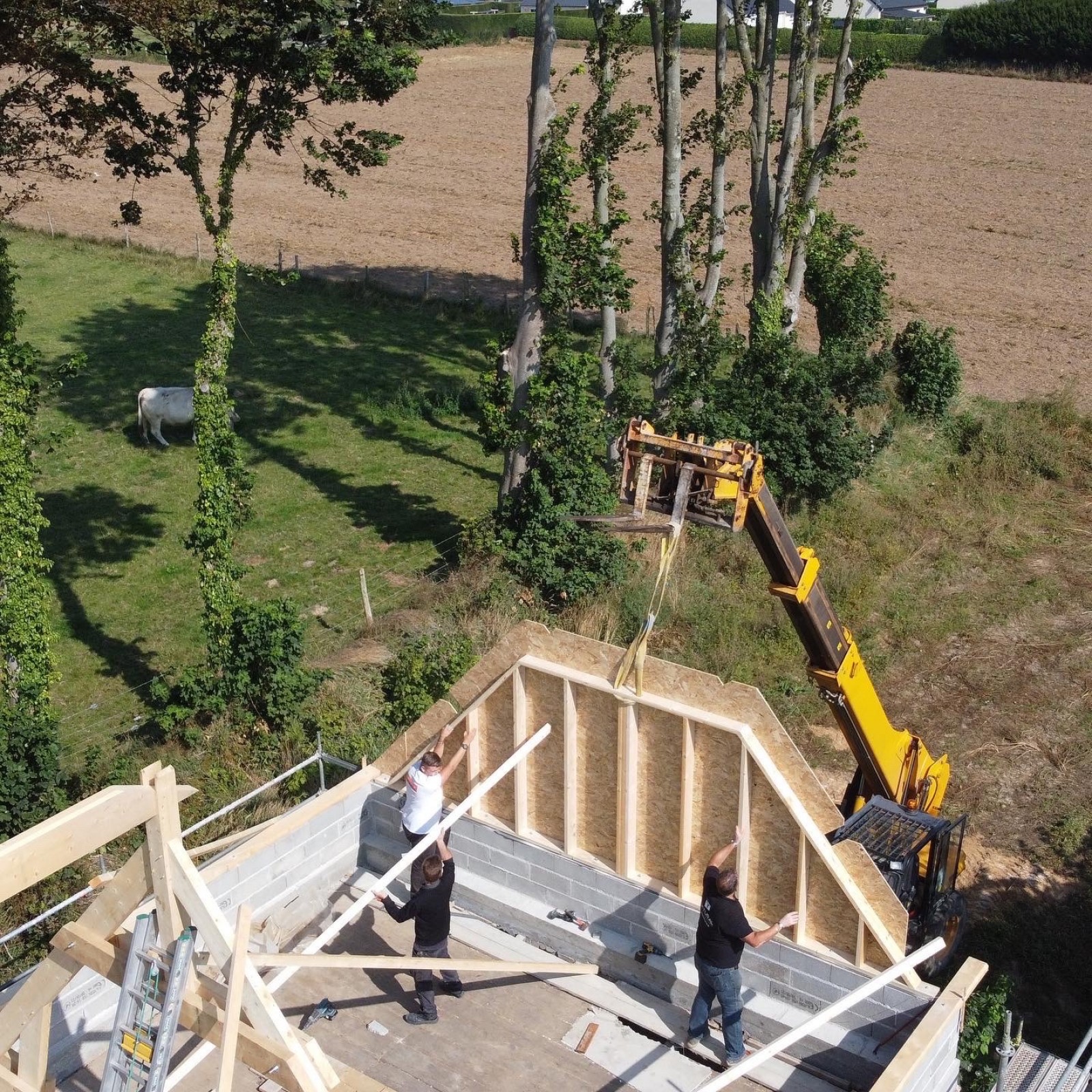 les fermes, les panne et sablières...Par la suite nous avons transporté l'ensemble sur notre chantier et commencé à monter la