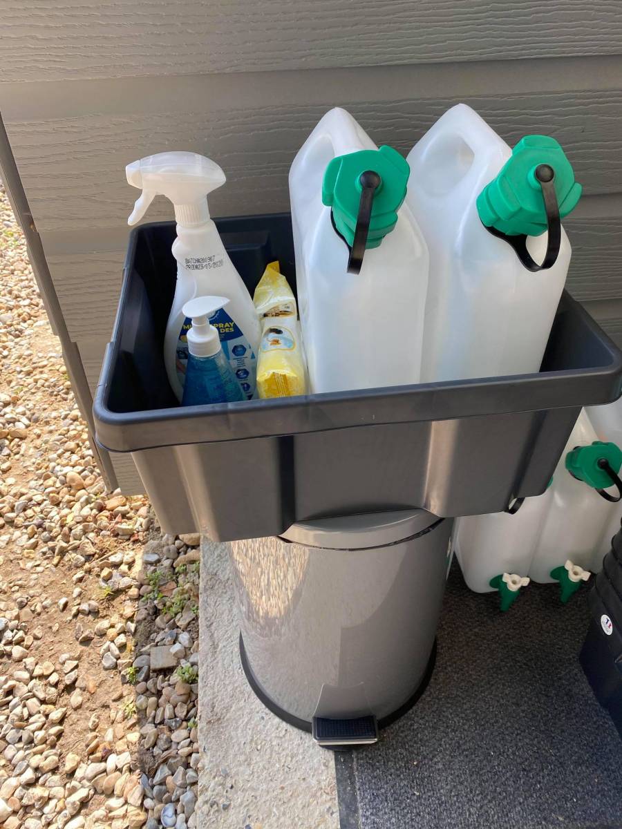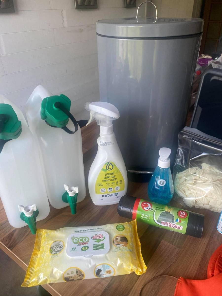 - Jerricane à eau pour le lavage des mains ;